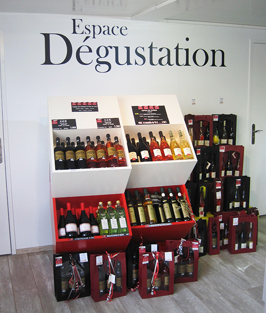 Espace de stockage pour les bouteilles ainsi que mise en place de meubles d’achalandage pour leurs produits.