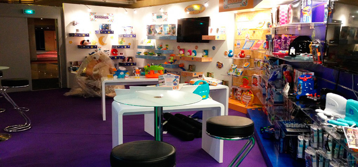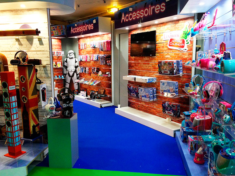 Interior layout of an area of 150 m2 to present and highlight the toys of our client LEXIBOOK