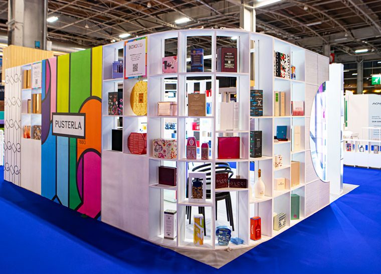 Pour le salon PCD à Paris, nous avons conçu un stand à l’identité affirmée, mêlant bois clair, lignes graphiques et tonalités profondes. L’architecture structurée et les vitrines rétroéclairées mettent en scène les réalisations de la marque, tandis que les espaces ouverts favorisent l’échange et la découverte.