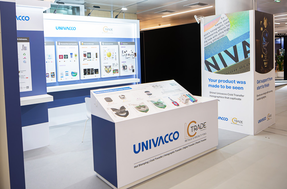 UNIVACCO est l’un des leaders mondiaux dans le domaine du revêtement et du transfert décoratif, offrant des solutions innovantes telles que le marquage à chaud, le transfert à froid, le transfert holographique et numérique. En tant que standiste à Marseille, nous mettons en valeur l’excellence et la créativité d’UNIVACCO à travers des stands qui reflètent l’esprit coloré et dynamique de sa marque.